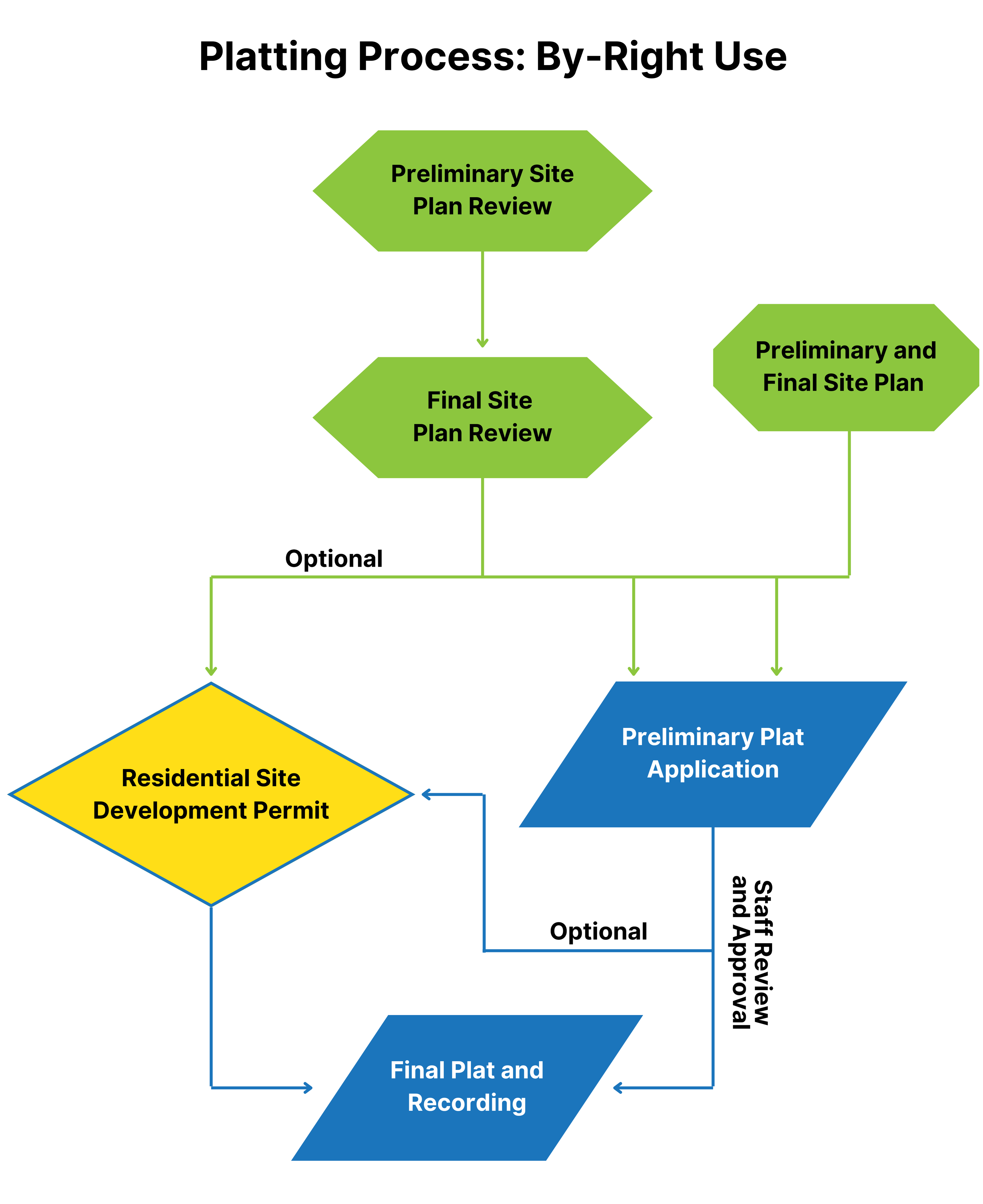 A residential site development permit is a type of permit that a developer may apply for, concurrently with the preliminary plat application, to request that a percentage of building permits or planned homes be issued for a residential or mixed-use subdivision, or planned community. You may apply using Accela once the permit becomes available.